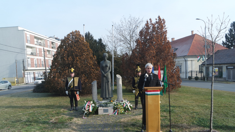 "Emlékezetünkben az elvitt áldozatok és itthon maradt, csonka családjaik olyanok, mint ez az 1998-ban emelt emlékmű a Földrajzi Múzeum előtt. Domonkos Béla szobrászművész alkotásában a magányos alak, ez a törékeny, mégis tűzön-vízen át kitartó nő az egész közösség tragédiáját szemlélteti. Várja az övéit, várja az idők végezetéig. Egy új év kezdetén mindig a remény hangja a leghangosabb. A remény tartott meg bennünket a nehéz időkben, és most is a remény hajtja előre Érdet. Az, hogy a járvány, a gazdasági válság, a társadalmat mérgező gyűlölködés után jobb jövő várhat ránk. Nemzedékeken át vittük magunkkal az érdi családok háború alatti és utáni veszteségét. Nekünk és utódainknak is emlékeznünk kell. Így tisztelgünk az áldozatok előtt. Így segíthetjük megnyugváshoz a túlélőket és családjukat. És ami legalább ilyen fontos: ebből meríthetünk erőt az újrakezdéshez. 2022 a remény éve lesz Magyarországon. Azt kívánom minden érdinek, hogy váljon valóra minden jó reményünk. A közelmúlt sebeit is meggyógyítva, együttes erővel és akarattal, a nézetkülönbségeket félretéve, csak és kizárólag szeretett városunk javát keresve lépjünk idén ebbe az új korba" – zárta szavait Csőzik László.