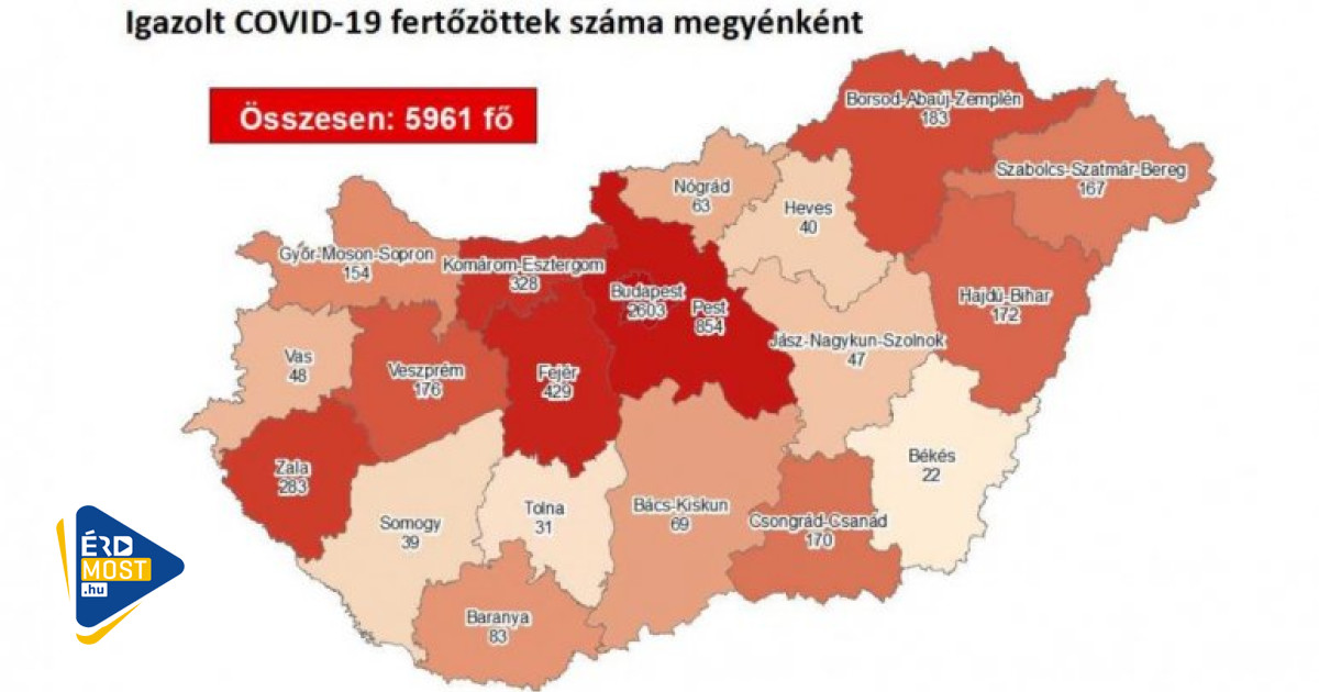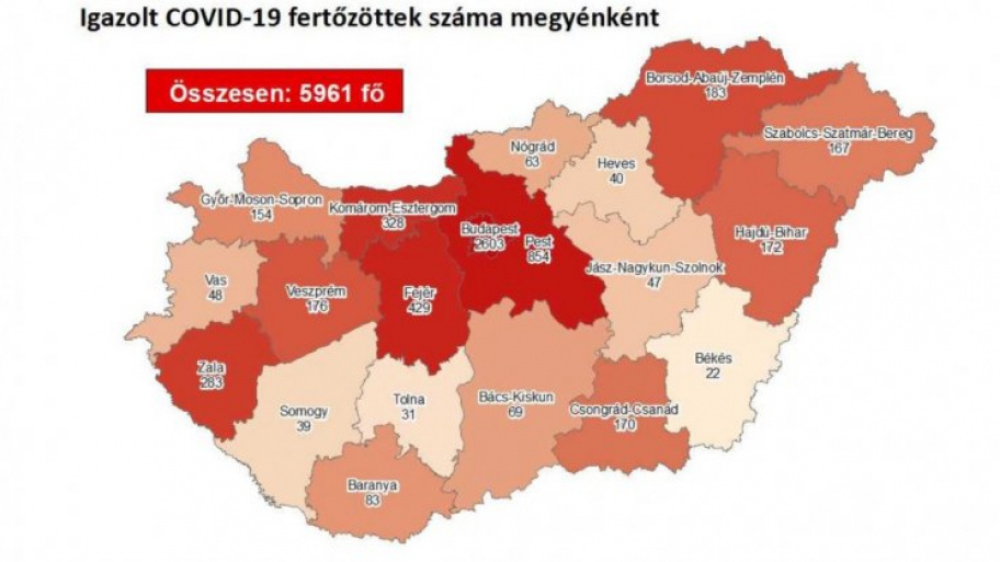 292 újabb magyar állampolgárnál mutatták ki az új koronavírus-fertőzést (COVID-19), ezzel 5961 főre nőtt a hazánkban beazonosított fertőzöttek száma. Az elhunytak száma változatlanul 614 fő, 3759-en pedig már meggyógyultak.
