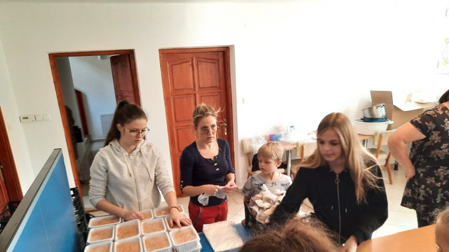 Stramszki István, az Érdi Adventista Gyülekezet lelkésze elmondta, hogy a gyerekektől a felnőttekig, valamennyien részt vettek a munkában, amely során milánói szószos szarvacska tésztából, kakaós süteményből és kenyérből álló csomagokat készítettek, összesen 330 adagot, amelyet 11 autóval vittek házhoz. A címlistában az Emberi Hang Alapítvány kuratóriumi elnöke, Paróczai Zoltánné segített nekik.