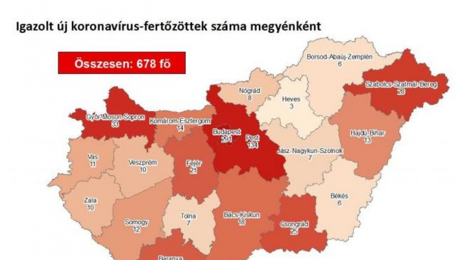 Újabb magyar állampolgároknál mutatták ki az új koronavírus-fertőzést (COVID-19), ezzel 678 főre nőtt a hazánkban beazonosított fertőzöttek száma. Elhunyt újabb 6 krónikus beteg, közülük öten 77 év felettiek. 58 főre emelkedett a gyógyultak száma is, írja a hivatalos kormányzati tájékoztató oldal.