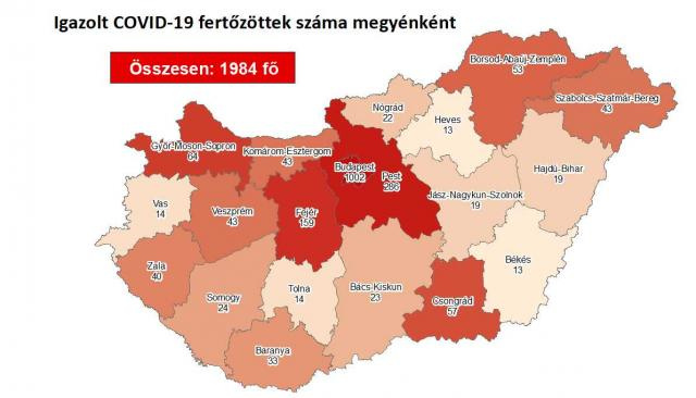 A területi megoszlás szerint az igazolt fertőzöttek száma Budapesten ezer fölé emelkedett (1002), míg Pest megyében 286 embert azonosítottak a Covid-19-cel. A legkevesebb igazolt fertőzött Heves és Békés megyékben van (13-13), továbbá Vas, Tolna, Jász-Nagykun-Szolnok és Hajdú-Bihar megyékben sem érte el a huszat a fertőzöttek száma.