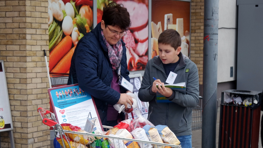 A fiatalok háromóránként váltották egymást a bevásárlókocsi mellett. A hetedikes Benedek az édesanyjával, Dórival vett részt az akcióban szombaton délelőtt; mint elmondta, nem ez volt az első alkalom, örömmel vállal szerepet a gyűjtésekben.
