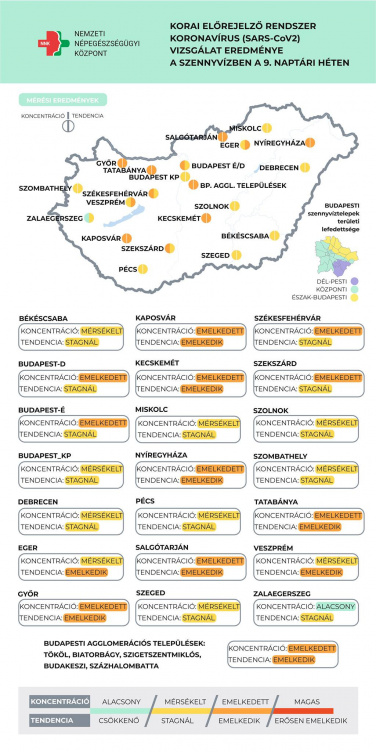 A kilencedik héten számos településen tovább emelkedett a szennyvízminták SARS-CoV-2 koncentrációja, az eredmények megközelítik az őszi járványcsúcs esetében tapasztalt értékeket - írja közösségi oldalán a Nemzeti Népegészségügyi Központ.