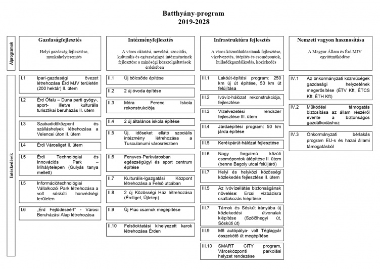 Mint mondta, Érdre további utak kellenek. De kell új bölcsőde is, óvodák, iskolák, a helyi gazdaság további erősítése, ezeket a fejlesztéseket tartalmazza a Batthyány Terv. Hozzátette, hogy ezeket a további forrásokat olyan városvezetés tudja csak megteremteni, amelyik a kormánnyal együtt tud működni.