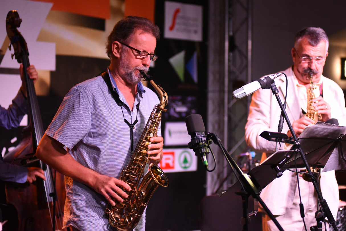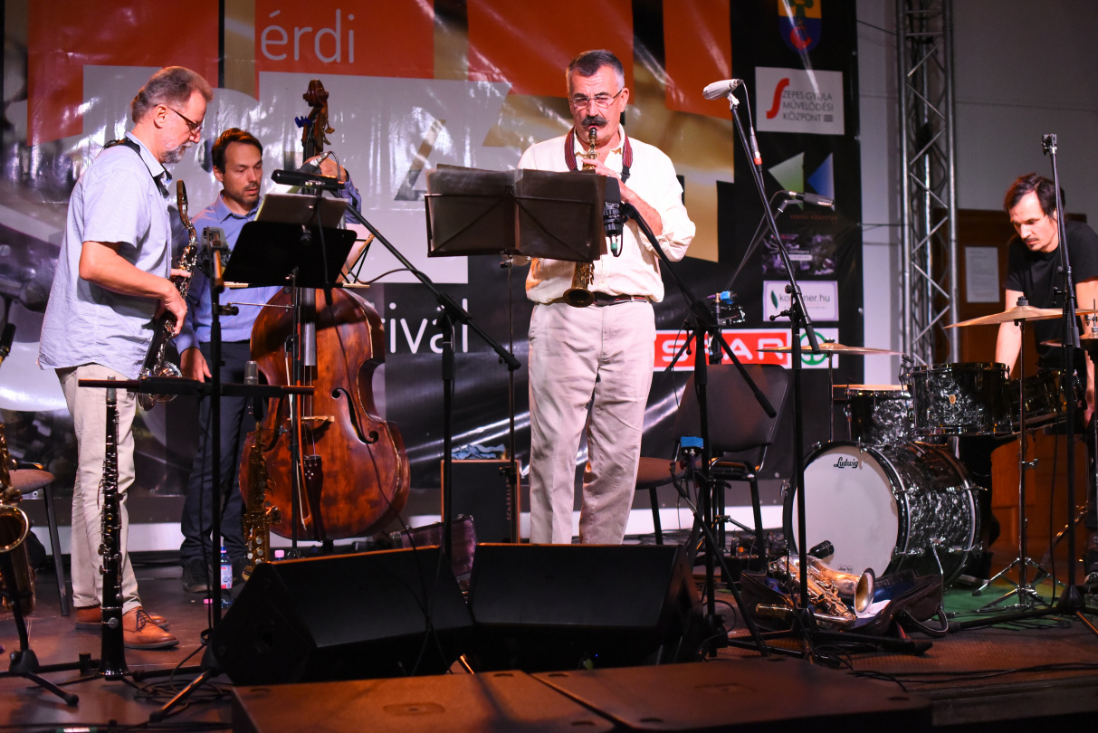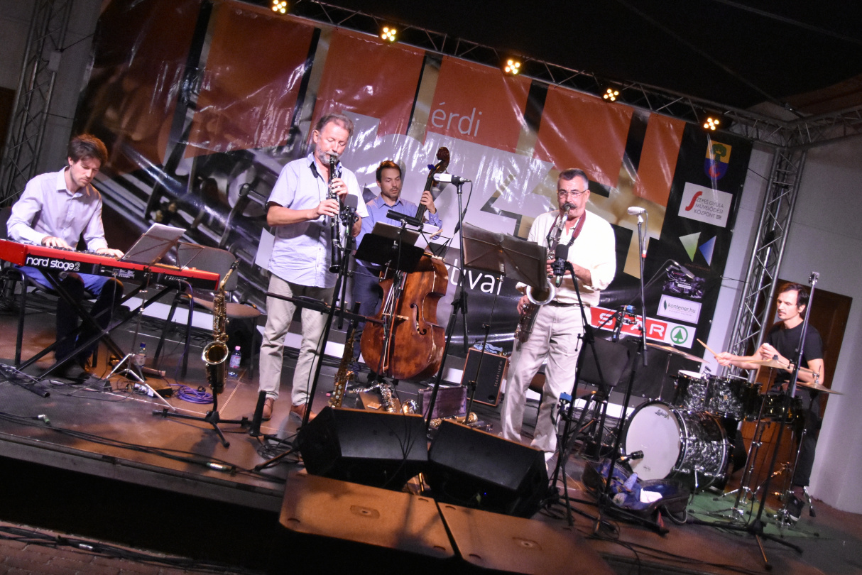 Ennek lehetett szem- és fültanúja mindaz (és voltak elég sokan, a múzeumkert kocsiszínjében gyakorlatilag este 8 után már nem akadt ülőhely), aki pénteken ellátogatott az V. Érdi Jazz Fesztivál soron következő koncertjére. A quartet, amit Horváth Balázs bőgős és G. Szabó Hunor dobos tett teljessé, közös, "Körbe-körbe" című lemezéről adott elő darabokat. Hallhattuk többek között a Játékot, a Fogócskát és a címadó dalt is. Az érdi közönség pedig hangos "bravó"-kkal és természetesen vastapssal fogadta ezt az egészen egyedi hangzásvilágot, ami mintha a zenészek legmélyebb zsigereiből törne fel, a jazz és a magyar, illetve balkáni zene nyelvén, hogy magával rántson minket, mint egy örvény, körbe-körbe. Vagy mint ahogy a lemez egyik kritikájában (hifipiac.hu, C.M.) fogalmaztak: