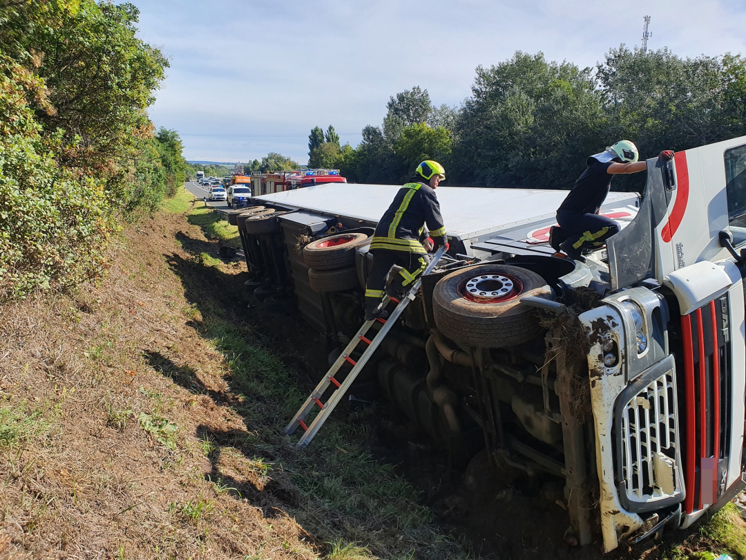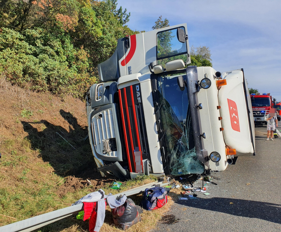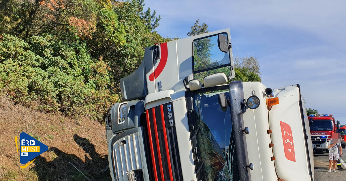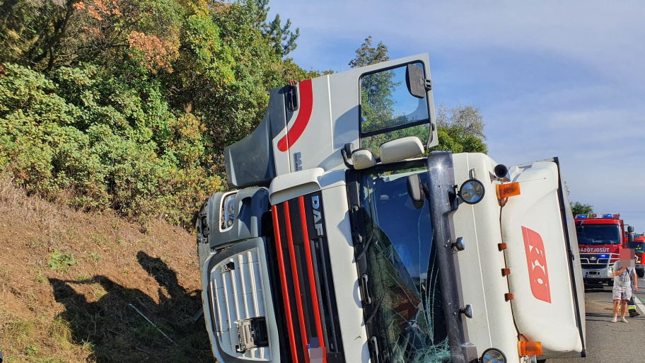 Árokba borult egy kamion az M7-esen, Martonvásárnál