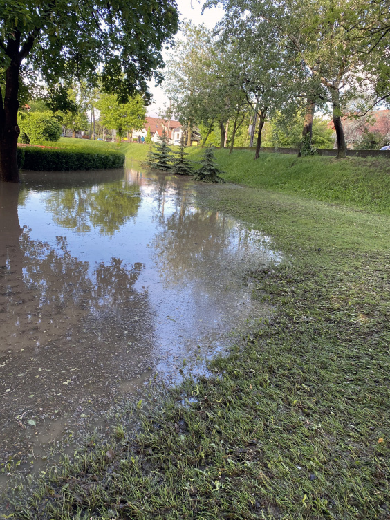 A tűzoltók sem „úszták meg”: pünkösdvasárnap délután egy Napvirág utcai eltömődött átereszt kellett megtisztítaniuk, mivel a felgyűlt esővíz befolyt az egyik ház udvarára – tudtuk meg Csámpai Attilától, a Pest Megyei Katasztrófavédelmi Igazgatóság megyei szóvivőjétől, aki hangsúlyozta azt is: az elmúlt időszak esőzései miatt a talaj vízbefogadó képessége egyre inkább csökken, ezért nagyon fontos a vízelvezető árkok karbantartása, ami a helyi rendelet szerint a lakosok feladata.