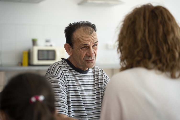 Az ötvenöt éves férfi beszél ukránul és oroszul is, ő tolmácsol azoknak az otthonban, akik nem tudnak magyarul. Nekem is segít, amikor megkérem: pár szót váltok egy ukrán hölggyel, megkérdezem, nem zavarja-e, ha fotót készítünk az újságnak. Mosolyogva int nemet.