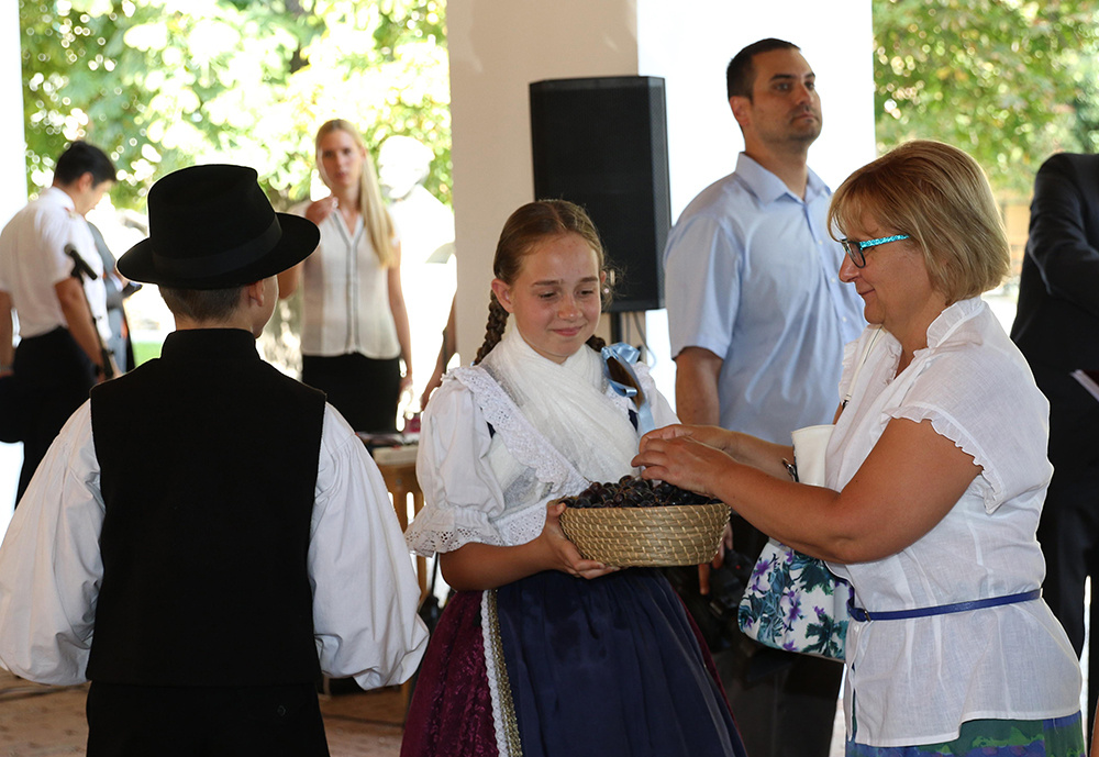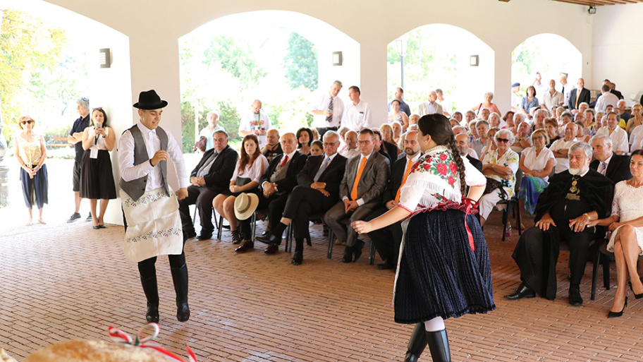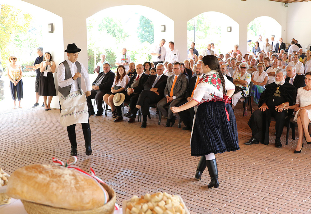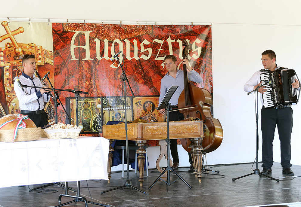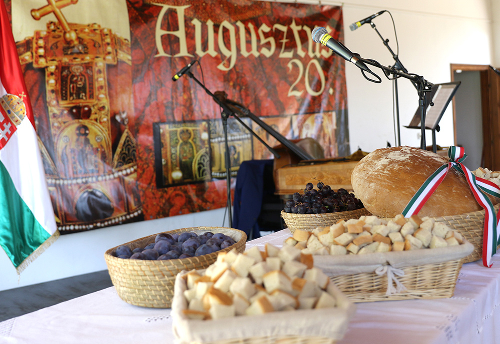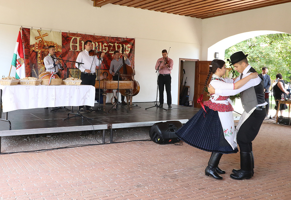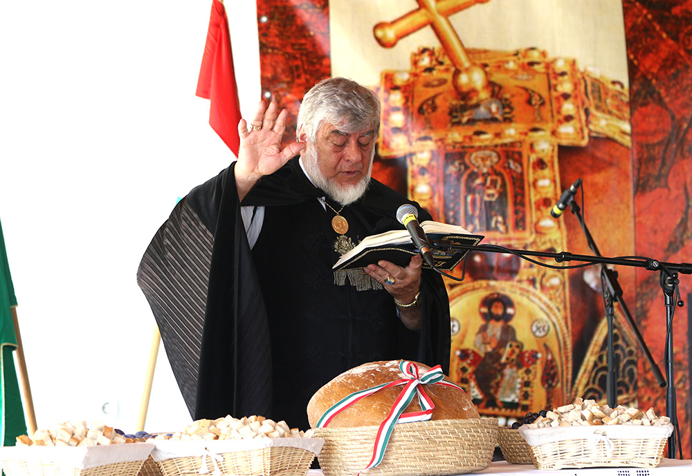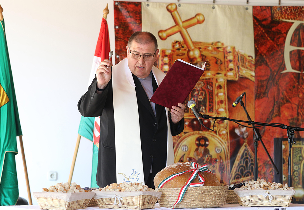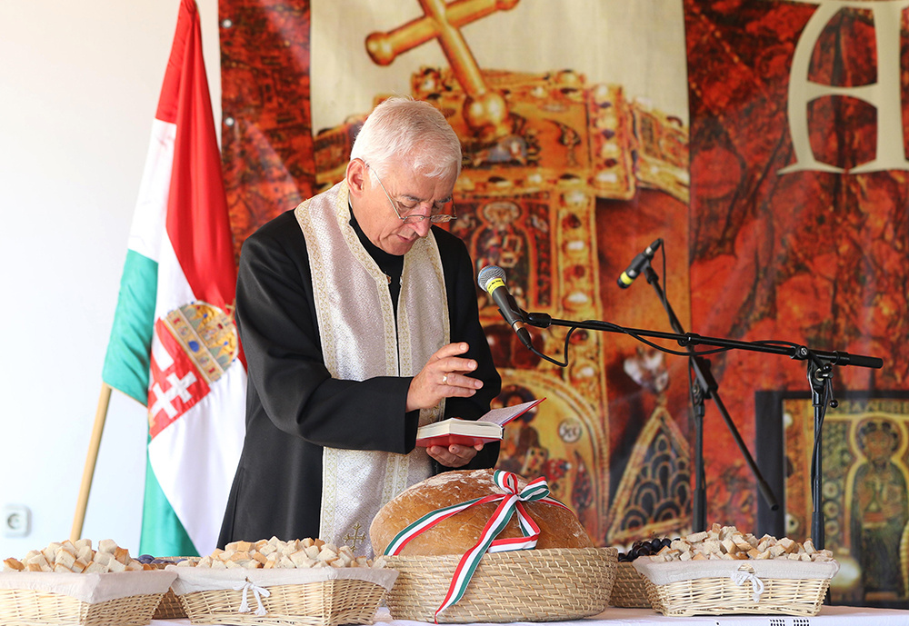Az ünnepi műsort követően Erdélyi Takács István református lelkész, Hajdu Ferenc római katolikus plébános és Szabó Mihály görög katolikus parókus szentelte meg a kenyeret, melyet a Forrás Néptáncegyüttes táncosai kínáltak körbe a közönségnek.