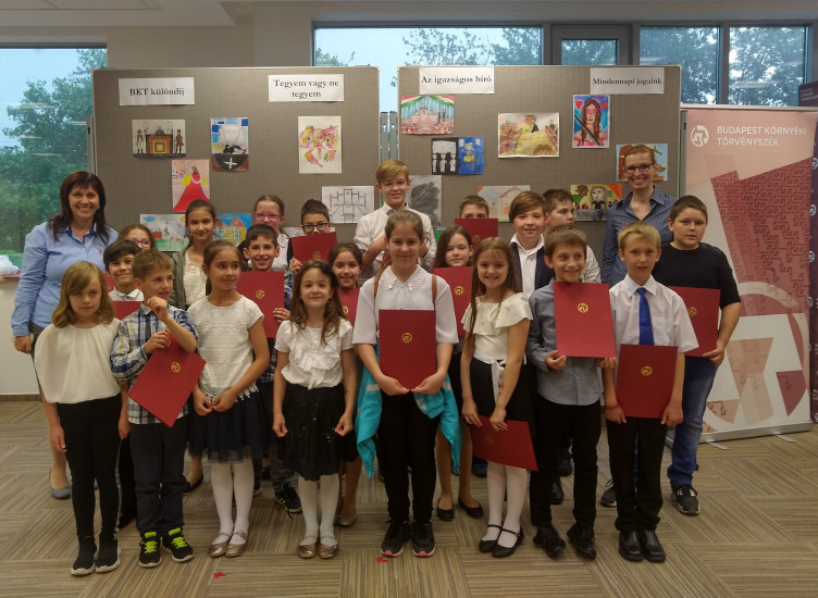 Dr. Gerber Tamás, a Budapest Környéki Törvényszék (BKT) elnöke megköszönte az ifjú művészeknek az alkotásokat, amellyel nemcsak a BKT, hanem a bírósági szervezetrendszer egésze gazdagodott, mert mondanivalójuk van, elgondolkodtatók, és visszajelzést adnak, hogy milyen kép él a fiatal generációban a bíróság szerepéről, az igazságos bíróról, a bírósági szervezetről. A Nyitott Bíróság Országos Program célkitűzése kapcsán a bíróságok társadalmi elfogadottságát, a bíróságokba vetett bizalom erősítését hangsúlyozta, valamint kiemelte, hogy a Programba tökéletesen illeszkedett a rajzpályázat, amelynek speciális üzenete az elfogadásra, az egyenlőségre, a különbségek eltüntetésére, az egymásra való odafigyelésre való törekvés. Végül köszönetét fejezte ki, hogy a bíróságok szerepet vállalhattak ebben a küldetésben.