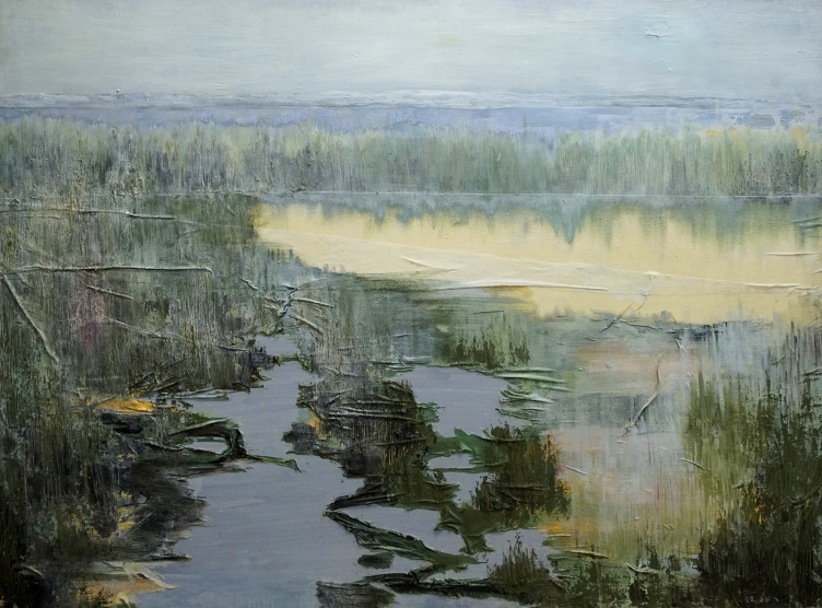 Jánosi Kata ezekkel a technikákkal tehát valóban természetlényegű képeket készít – hallhattuk a továbbiakban –, még ha nem is beszélhetünk konkrét ábrázolásról, mondhatni: nem kívülről fest befelé, hanem belülről fest kifelé, s így a lélek felolvad a természetben, a természet pedig felolvad a lélekben. A látvány tehát – ahogy az alkotó fogalmaz – „bizonytalan, álomszerű és nem tudhatjuk, mit is látunk valójában; számomra ezt jelenti a lelki táj”. Így aztán mi, befogadók is megnyugodhatunk, mert ha a művész is azt mondja, hogy nem lehetünk benne egészen biztosak, mit is látunk, ha az ábrázolás, például a természeté, egy lelkiállapot kivetülése, akkor ránk van bízva, hogy a művet a magunk számára értelmezzük és befogadjuk.