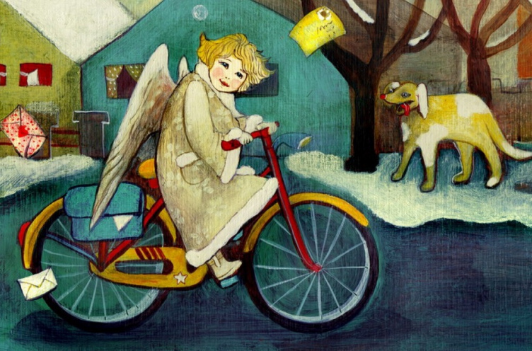 – Mert hát mit csinál egy karácsonyi angyal? Kézbesít! Ugyanazt kell tenned, amit eddig, és még egy biciklit is kapsz a cégtől! Itt van leírva, ni.