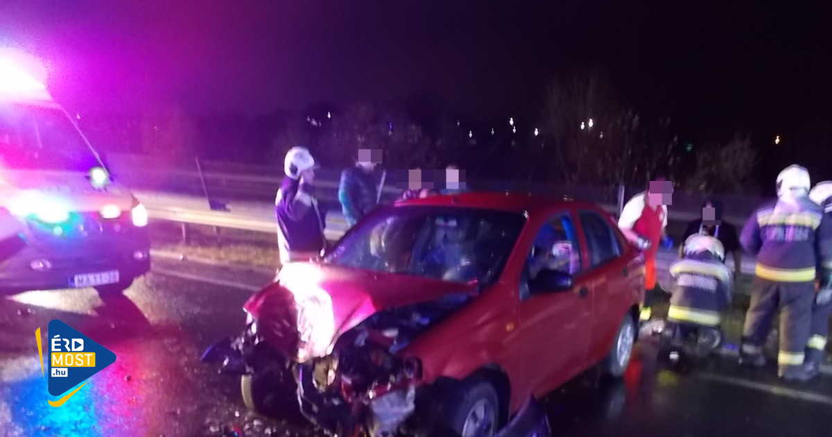 Két személyautó ütközött össze Érdnél, többen megsérültek.