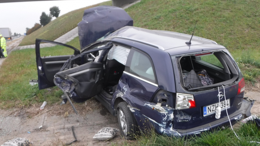 Letért az úttestről egy autó az M6-os autópálya Pécs felé vezető oldalán, a 28-as kilométernél, Százhalombatta térségében. A balesethez az érdi hivatásos tűzoltókat riasztották, akik áramtalanították a járművet. Az egység segít egy embert a mentőautóba helyezni.