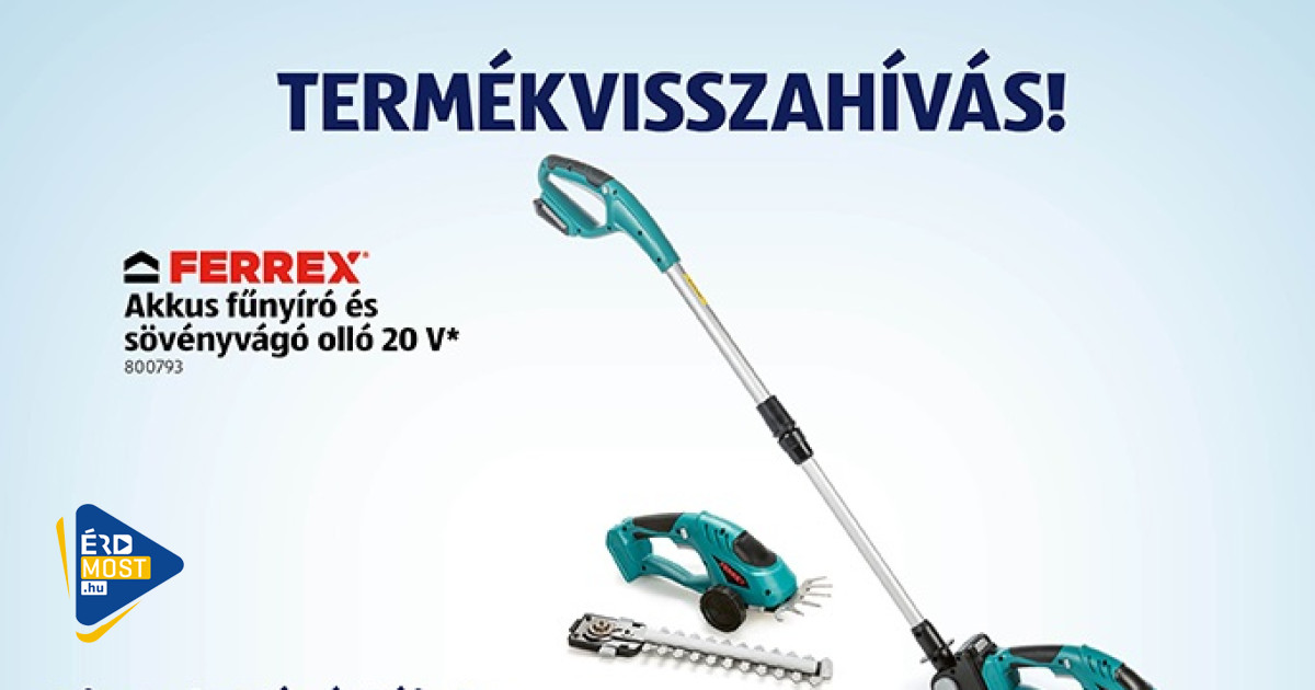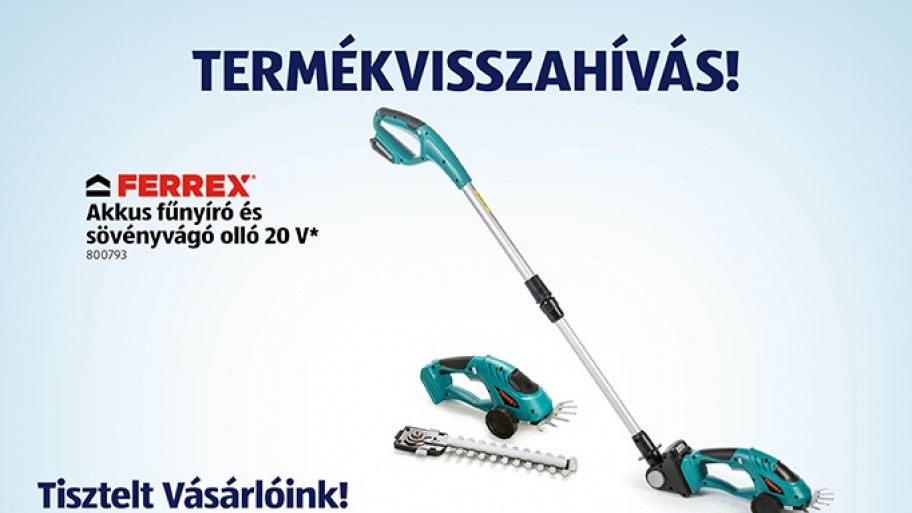 Azonnali hatállyal visszahívja a FERREX akkumulátoros fűnyíró és sövényvágó ollót valamennyi magyarországi üzletéből az Aldi –közölte az áruházlánc csütörtökön. A visszahívás oka, hogy a termék az akkumulátor behelyezését követően ritkán ugyan, de automatikusan beindulhat.