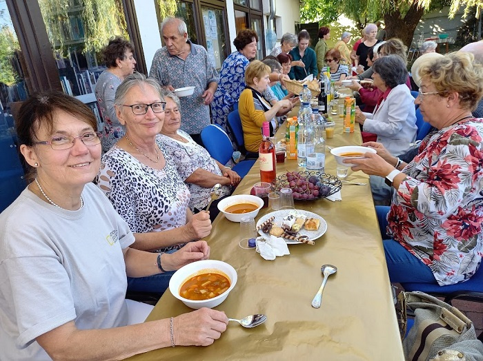 "Sajnos a lengyelországi út nem valósulhatott meg a beutazási korlátozások miatt. Most a szeptemberi programot úgy alakítottuk, hogy bármikor lemondhassuk, ha a helyzet úgy hozná – szerencsére erre nem volt szükség. Az érdi könyvtár udvarán bográcsoltunk, sertésgulyással készültünk – valamint sok süteménnyel, gyümölccsel, itallal. Úgy érzem, nagyon kellett az egyesület tagjainak ez a találkozás: mi egy összeérett csapat vagyunk, bátran nevezhetem közösségnek! Beszélgettünk, emlékeztünk a múlt közös élményeire, a mindegy 29 közös tanulmányútra, a tartalmas rendezvényekre. És persze beszéltünk a terveinkről is!"