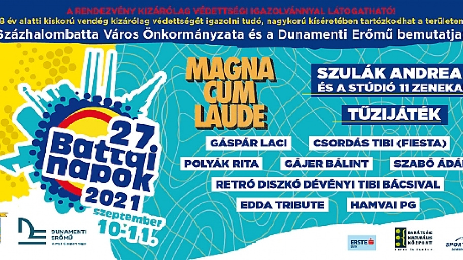 A szervezők tájékoztatják a látogatókat, hogy a rendezvény ideje alatt (2021. szeptember 11-én 21:00-21:15, Tűzijáték) pirotechnikai eszközök kerülnek felhasználásra. A rendező szervek felhívják a látogatók figyelmét, hogy a tűzijáték jellegéből adódó szabályos működés esetén is hullhatnak le kisebb sérülést, tüzet okozó szikrák, amelyeket a kisebb légáramlatok védőtávolságon kívülre is elsodorhatják.