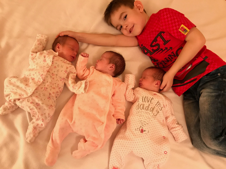 Mária várandóssága problémamentes volt, bár az utolsó hónapban már minden testhelyzet és mozdulat nehézkessé vált, ami teljesen érthető, ha egyszerre három picit hordoz magában a kismama. Végül a lányok a tervezett császármetszés időpontjánál egy héttel korábban már úgy gondolták, ideje lenne megnézniük ezt a kinti világot is, és január 12-én, a terhesség 35. hetében a 2. számú Nőgyógyászati Klinikán megszülettek. Hanna és Kamilla 1990 grammal, 43 és 47 cm-rel, Jázmin pedig 2290 grammos súllyal és 49 cm testhosszal jött a világra. A picik és anyuka is jól vannak, és 10 nap kórház után, múlt héten kedden már haza is jöhettek, azóta pedig itthon próbálnak berendezkedni a nagycsaládos életmódra.