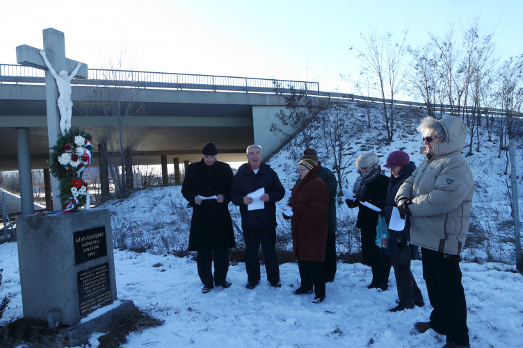Nem marad el viszont az a megemlékezés, amit a málenkij robotból négy év után hazatért Eszes Vendel és János, illetve több társuk leszármazottai rendeznek meg évről évre a 6-os út mentén felállított keresztnél, aminek felállítását az Eszes család kezdeményezte. Eredetileg városi emlékművet szerettek volna, de ennek felállítását abban az időben - jó harminc esztendővel ezelőtt - halogatta az önkormányzat. Így aztán az Eszes család földjén, több ember összefogásával és anyagi áldozatával emelték azt a keresztet, amit 1994. augusztus 20-án szenteltek fel. Azóta minden esztendőben megtartják a megemlékezést, január 8-án, tíz órakor, a Német és a Horvát Nemzetiségi Önkormányzat tagjainak részvételével.