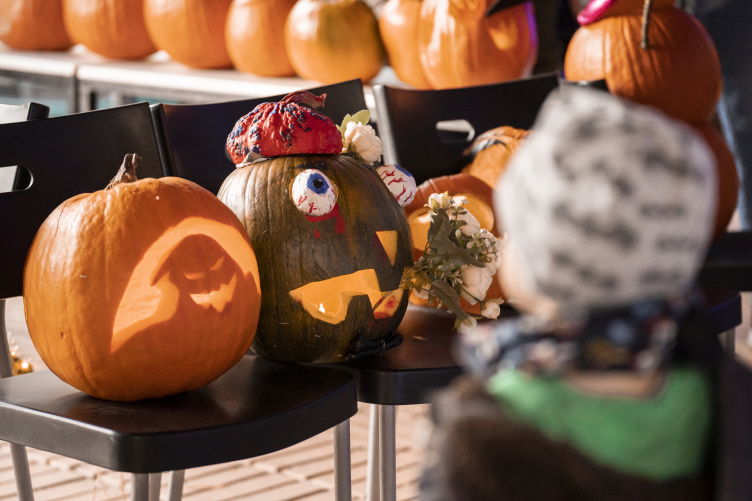 Csokit vagy csínyt! – kiáltotta hangosan a kislányom, majd belemarkolt a cukorral és csokival teli dobozba, és izgatottan lépett be a múzeumkertbe. Elsőként a Mesegyárnál ragadtunk le, ahol a közönség soraiból is könnyen a színpadon, egy mese közepén találhatták magukat a gyerkőcök. Bár az enyém szerepelni ezúttal nem akart, de csillogó szemekkel hallgatta az előadást. Sokat időztünk itt, végül a sütőtökös muffin és a kakaó volt az, ami miatt – ha rövid időre is –, de hátat fordítottunk a színpadnak. A Mesegyár szünetében kipróbáltuk az ügyességi vetélkedőt, de csak az első állomásig jutottunk, ahol gesztenyével kellett ledönteni a műanyag poharakból épített tornyot, mert újabb mese kezdődött. A következő szünetben végre megcsodáltuk a tököket is, amelyek egyre nagyobb számban érkeztek, és szépen sorban elmondtuk, kinek melyik tetszik a legjobban, és szerintünk melyik nyer.
