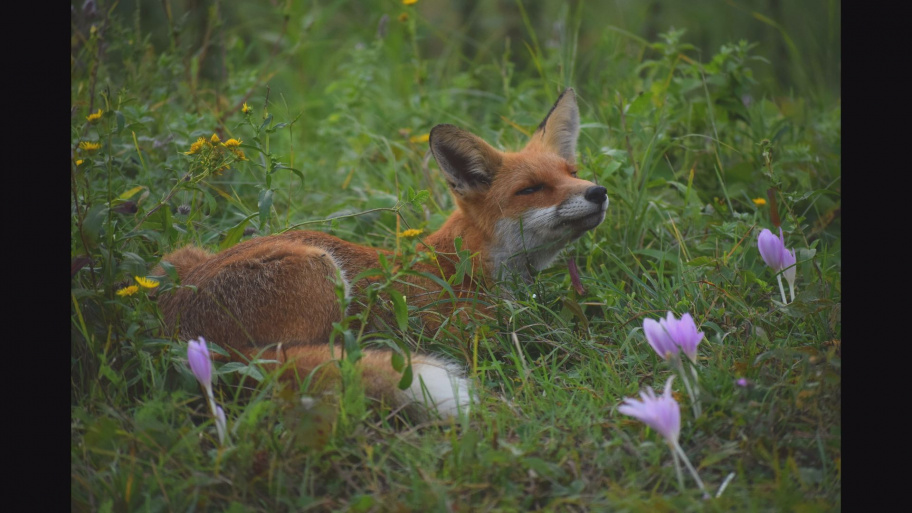 „Nagyon szerettem volna rókákat fotózni, de fel voltam rá készülve, hogy nem biztos, hogy sikerrel járok. A Pilisben vártam a nagy pillanatra. Körülbelül egy órája ültem csendben, amikor egy csodás példány bukkant fel nem túl messze tőlem. Rövid ideig óvatosan jött-ment, körbeszaglászta a területet, majd egészen megnyugodott. Befeküdt a mezei virágok közé, pihent egy keveset, majd elégedetten eloldalgott”