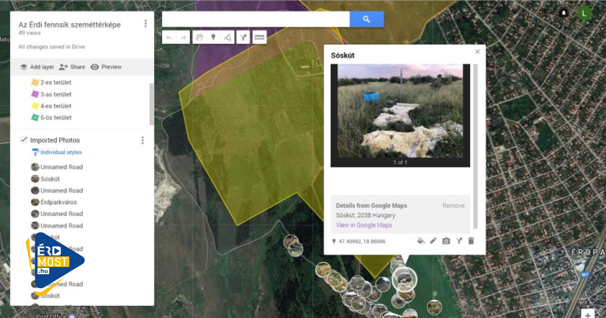 Préger Lajos elmondta, hogy a digitális szeméttérkép kialakításához két eszközt használtak: a mobiltelefont, aminek az iránytűje számukra kellő pontossággal mutatja, hol találtak szemetet, illetve maga a Google Maps, amire rá lehet ezeket a koordinátákat vetíteni. - Kimegyünk a terepre, lefényképezzük a szemétkupacokat, rögzítjük a koordinátákat, ezt rávetítjük a Google Mapsre, az adatokat feltöltjük egy táblázatba, aminek segítségével az adott koordináták alapján meg tudjuk jeleníteni a térképen, hol van a szemét, a képre rákattintva pedig lehet látni, hogy milyen jellegű és mennyiségű az. Tehát hogy veszélyes vagy építkezési hulladék-e például, illetve, hogy géppel vagy kézzel elszállítható-e.