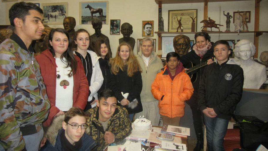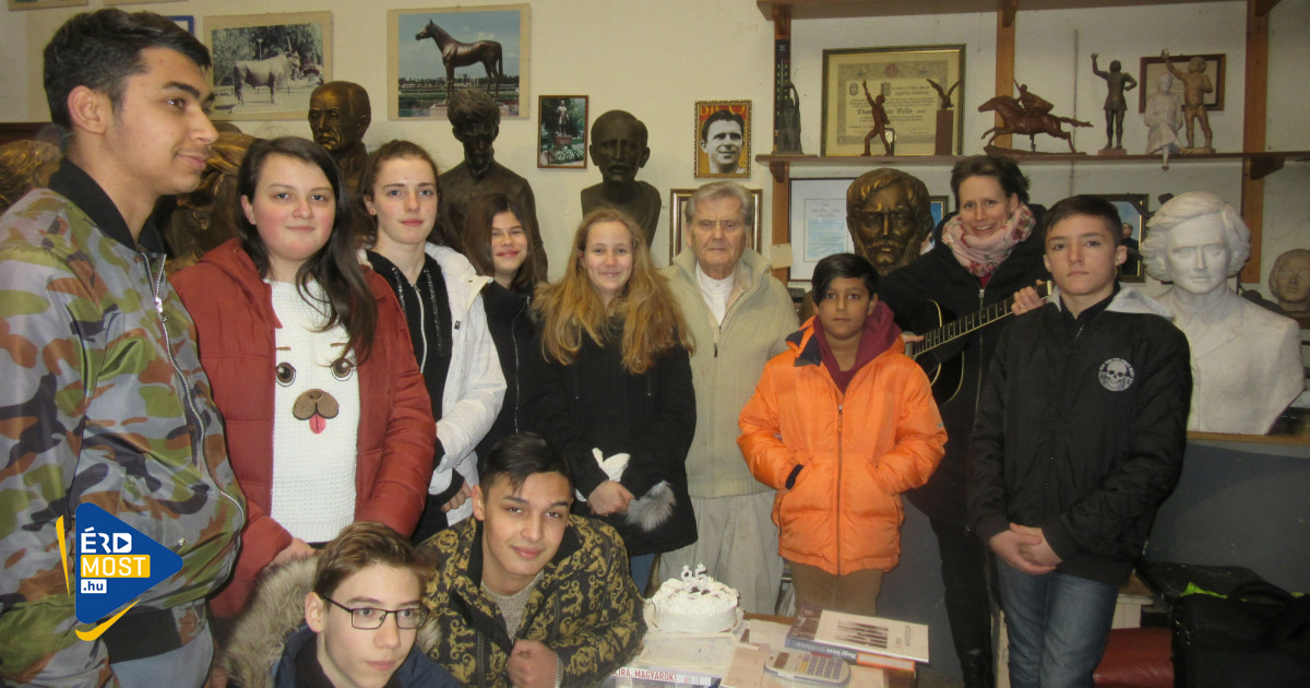 Végül a köszöntésen jelen levő diákok egy rögtönzött történelem és irodalom órán vehettek részt a szobrász lakásában. Az meg csak ráadás, hogy mindeközben az emberi kéz által létrehozott alkotás, a szobrászat erejéről, és Érd város iránti hűségről és szeretetről is kaptak mintát.