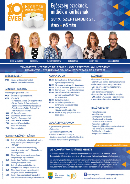 A Richter Nyrt. 2 millió forint alapadományt ajánlott a fel a szakrendelőnek, amely ebből a gyermekkardiológiai eszközparkot fejleszti majd. Az adományalapot a résztvevők a szűrésért, tanácsadásért, előadásért járó adományponttal növelhetik. A látogatók a főtéren elhelyezett infopultoknál átvehetnek egy pontgyűjtő füzetet (amely tartalmazza a tájékoztatást a szűrővizsgálatokról, valamint az egész napos programról); ebbe kerülnek bele a szűrővizsgálatok eredményei, valamint a pontok, amelyeket a Richter Nyrt. pénzre vált..