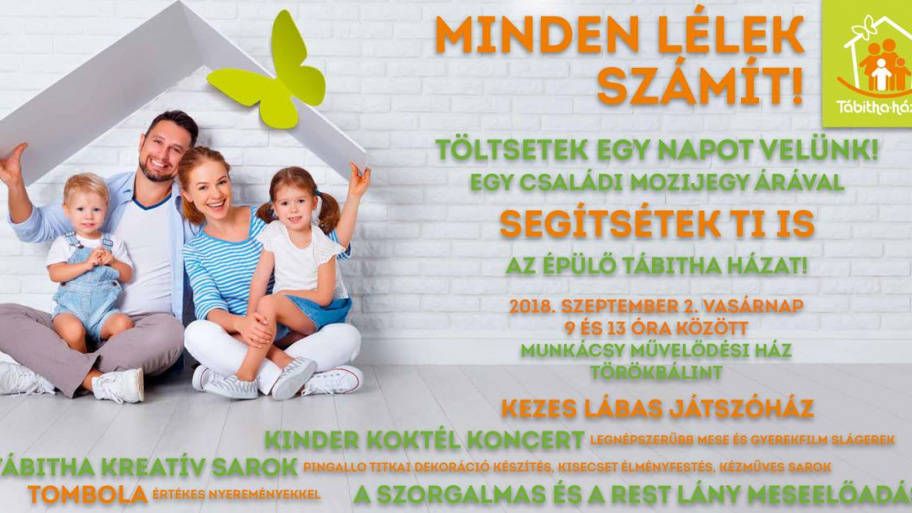 A Tábitha ház jótékonysági családi napot szervez szeptember 2-án vasárnap a törökbálinti Munkácsy Mihály Művelődési Házban.