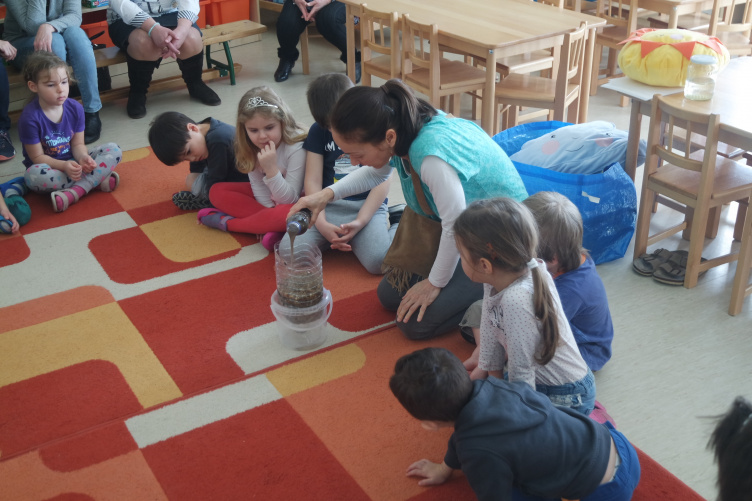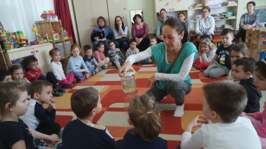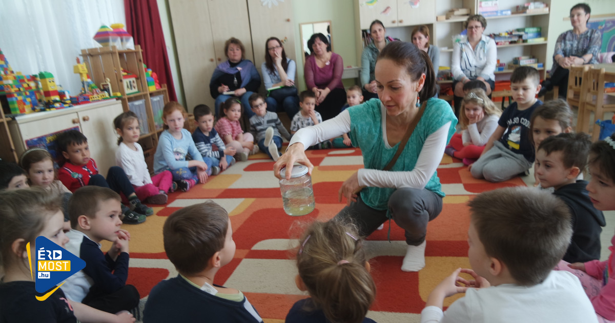 A vízről sokat, sokféleképp lehet mesélni, de úgy, hogy az a legkisebbek számára is élvezetes, érthető és befogadható legyen, már nem is olyan könnyű. Práger Anna, aki a Lépten – Nyomon Mobil Környezeti Nevelés csoporttól érkezett Érdre, dalokon, meséken, szerepjátékon egy kísérleten keresztül ismertette meg a Meseház óvoda apróságait a vízzel és annak élővilágával.