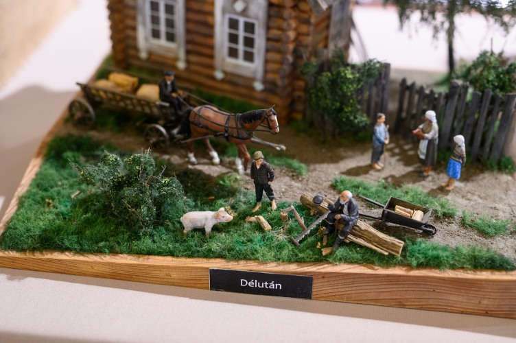 A tervezés, illetve a kutatómunka. Hogy ennél a példánál maradjak, utánajártam, hogy épül fel egy rönkfaház, milyen zsindely fedi. Mindig a figurákhoz alakítom a hátteret. Ezeket megveszem, összeragasztom és lefestem, aztán elhelyezem az általam kialakított térben.