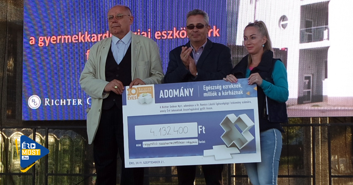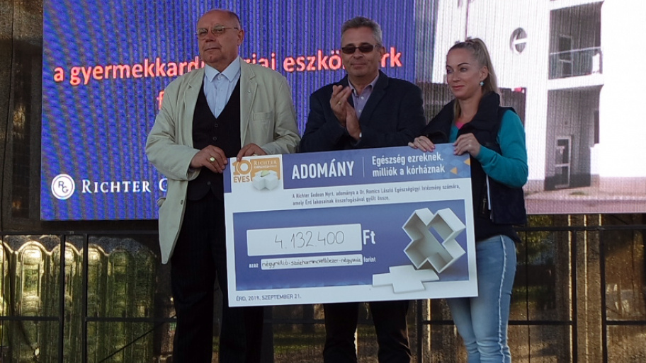 – Ez az összeg felülmúlta az álmaimat – így fogalmazott a Richter Egészségváros program végén, az adományösszeg bejelentésekor Bárány Zsolt, az egészségügyi intézmény főigazgatója. Kétmillió forint alapadományt a Richter Nyrt. ajánlott fel, ezt az összeget duplázták meg a jelenlévők azzal, hogy részt vettek a több mint harminc szűrésen, előadáson, illetve a kísérőprogramokon: együtt tornáztak Katus Attilával, meghallgatták Jaksity Kata, Szily Nóra, Béres Alexandra, és Zsiros László Róbert előadásait, izgalmas kísérletekben vettek részt, vagy épp a bábszínházi előadást, illetve a helyi sport- és táncegyüttesek bemutatóját nézték.