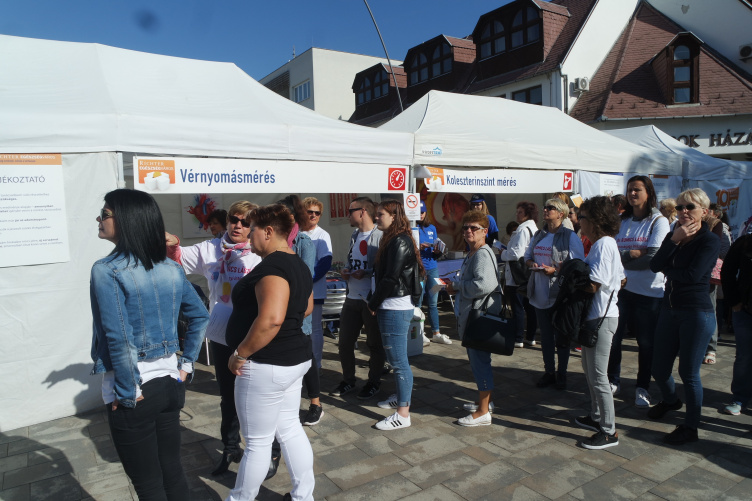 A rendezvény egészségsétával indult, amin mintegy kétszázan vettek részt, a szakrendelőnek szánt adomány növeléséért is lépegetve, hiszen a sétáért is jártak az adománypontok, amelyeket egy füzetben gyűjthettek a látogatók. Ide került bele az is, hogy milyen szűrővizsgálaton vettek részt; az eredményre sem kellett várni, azonnal megmondták a páciensnek. A leglátogatottabb a koleszterinszint-mérés, az asztmaszűrés és csontsűrűség-mérés volt. Ez utóbbi vizsgálat során 50 lakosnak mértek olyan értéket, amely csontritkulásra figyelmeztet, és mindenképp javasolt a további kivizsgálás – tudtuk meg Olasz Saroltától, a Richter Gedeon Nyrt. képviselőjétől.