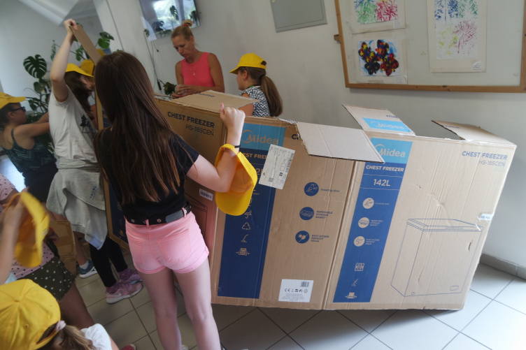 Hagyomány már a táborban, hogy valami olyan dolgot is alkotnak, amiben mindenki részt vesz, és ezt fotón is megörökítik. Idén kartondobozvárat építenek és díszítenek, és minden csoport összeállít egy-egy emlékkönyvet is – ezek segítségével bármikor visszaidézhetik az elmúlt nyarat, a közös kalandokat.