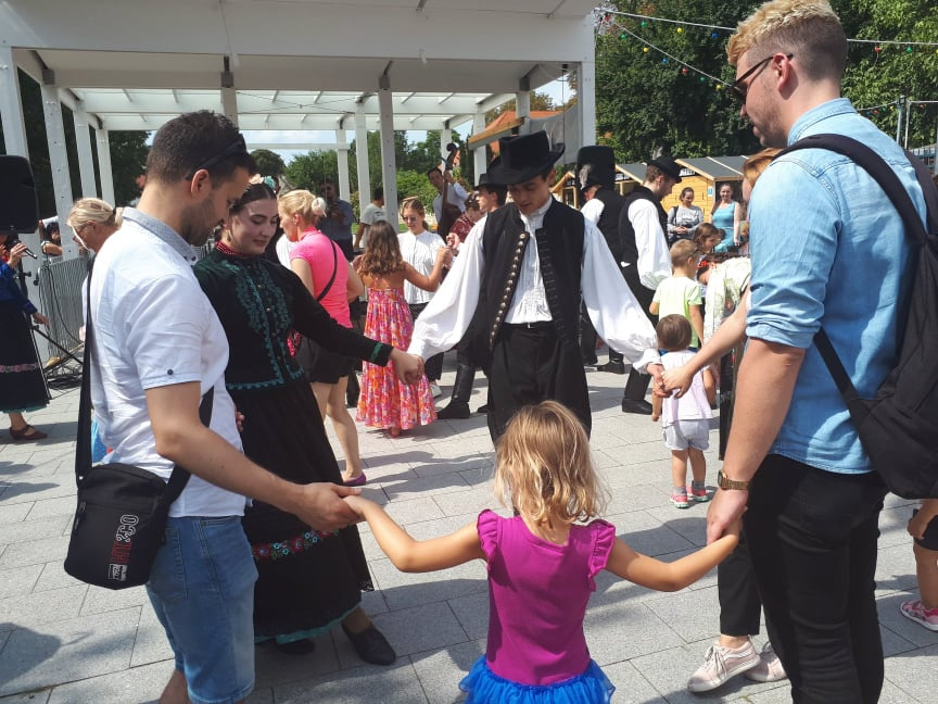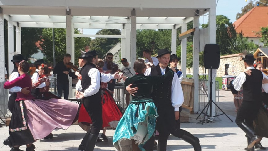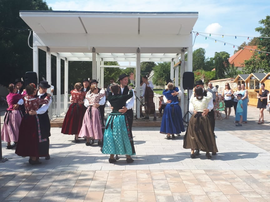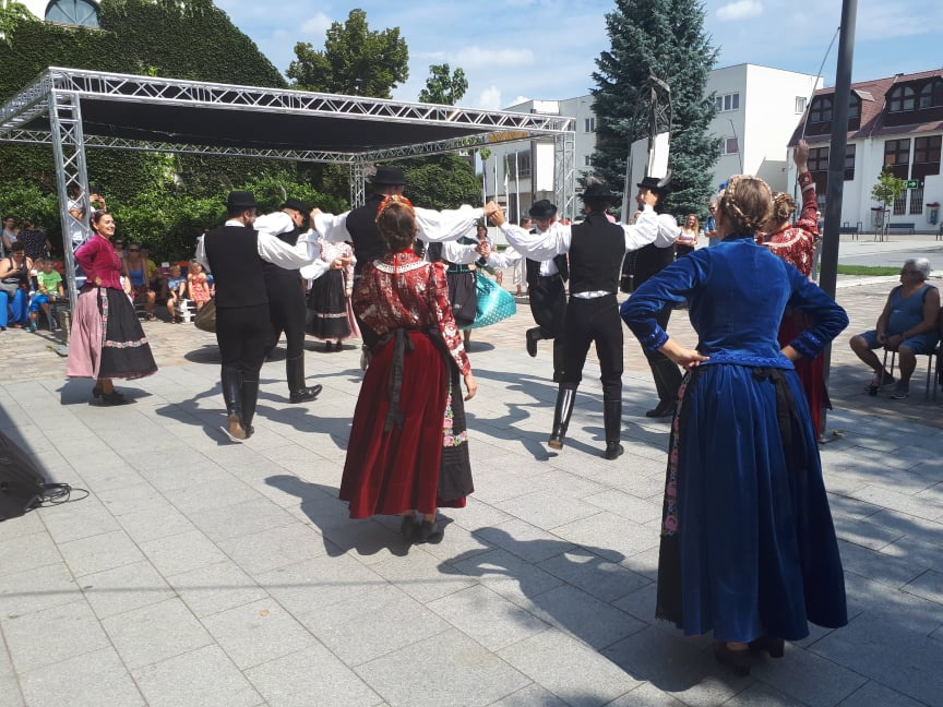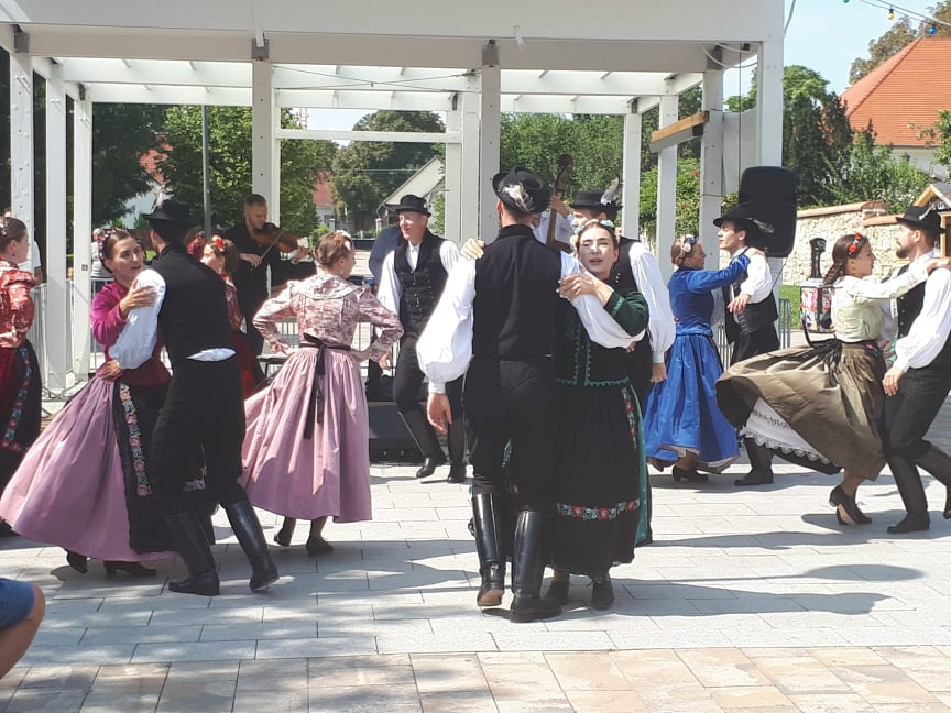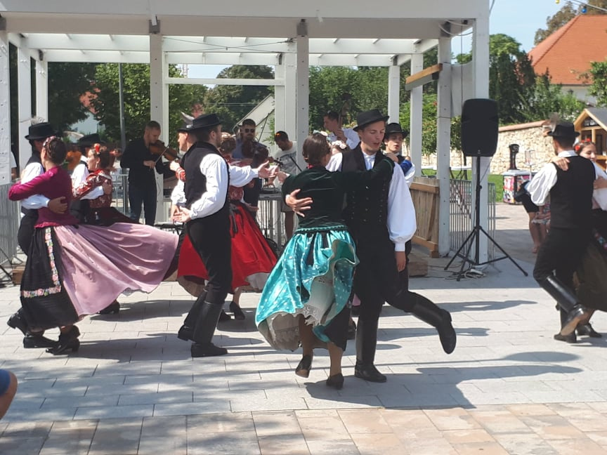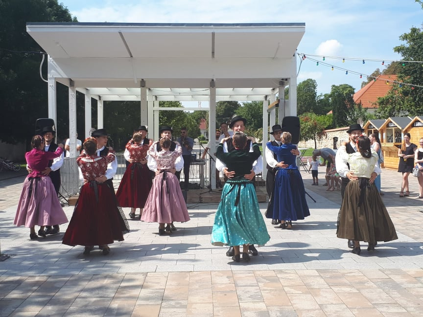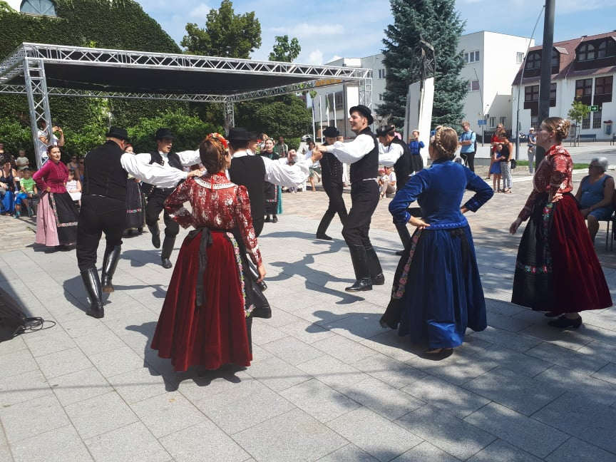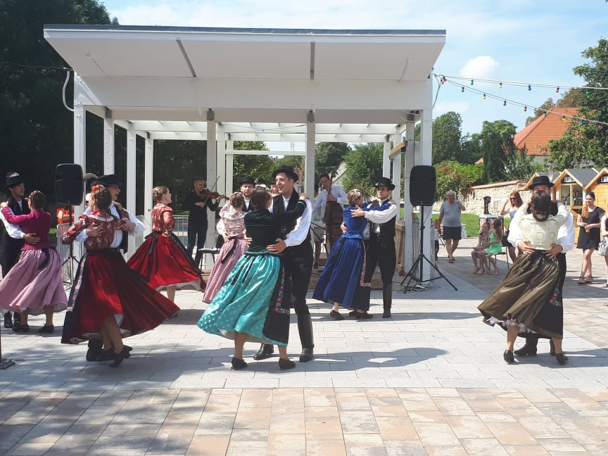 TücsökSzabi gyermekkoncertje végére már körülbelül száz ember gyűlt össze vasárnap délelőtt az érdi főtéren, ahol a Corvinus Közgáz Néptáncegyüttes tartott előbb táncbemutatót, majd táncházat. A lányok és fiúk egy korabeli, archív fotó alapján rekonstruált csallóközi népviseletben ropták a tikkasztó hőségben, amin a nézelődők hiába is ámultak bámultak, nem tehették ezt sokáig, mert a bemutató után már mindannyiukat táncra is fogták az együttes tagjai. Kicsik és nagyok, félig profik, profik és teljesen kezdők járták a csárdást és a cifrát a Gloriett árnyékában. Hatalmas siker volt a táncház, hatalmas taps járt hát a végén az együttesnek, na meg persze a lelkes amatőröknek is.