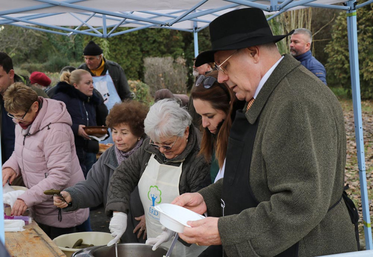 Az eseményen T. Mészáros András polgármester is ételt osztott, mint mondta, már nem először tartottak ilyen jótékonysági akciót.