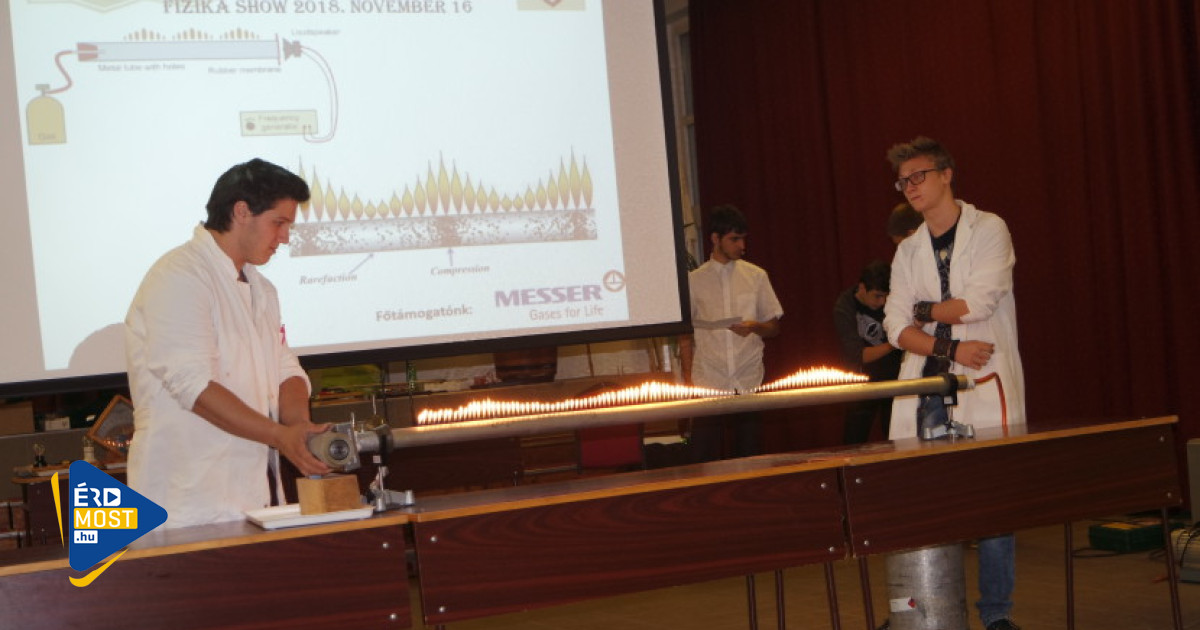 – Szabad kezet adtunk nekik, ők válogathatták össze a kísérleteket, a hullám, a fény, a mágnesesség, villamosság témaköréből – tudtuk meg Varga Zsolt fizika, informatika szakos tanártól, aki Petrovácz Ilona tanárnővel segítette a diákok munkáját. Mint elmondta, a kísérletekhez az iskola eszközeit használták fel, de volt, amit ők barkácsoltak össze, és voltak olyan speciális anyagok is – mint például a szárazjég –, amivel a Messer cég támogatta az iskolát.