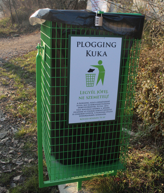 Az első lépések egyikeként viszont nemrég kikerült egy úgy nevezett plogging kuka az Esztergályos utcában. A svédországi eredetű plogging lényege, hogy a futó kocogás közben szemetet szed.