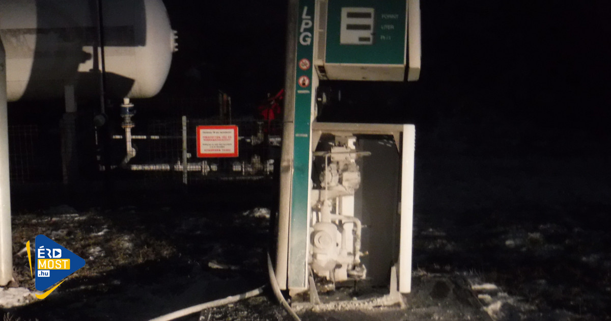Autógáz-töltő kútnak ütközött tolatás közben egy kamion vasárnap éjfélkor az M1-es autópálya 28-as kilométerénél, Herceghalom közelében.