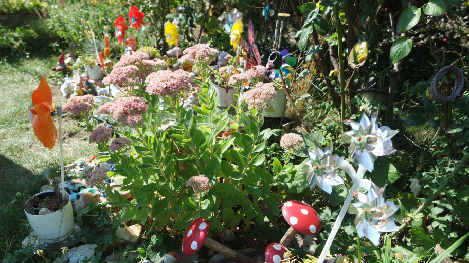 A lányom játékai is helyet kaptak apránként a kertecskémben. A szomszédban egy bölcsőde van, jönnek a gyerekek, a szülők, meg-megállnak, nézegetik az apróságokat, és boldogan fedezik fel az új szerzeményeimet. Nemcsak a magam, hanem az ő örömükre is építem, szépítem. Nagyon ügyelek az ünnepi dekorációra is, húsvétkor tojásokat aggatok fel, novemberre tököket faragok, karácsonyra szaloncukrot teszek ki” – meséli Zsuzsa, aki most már az őszi dekorációra készül.