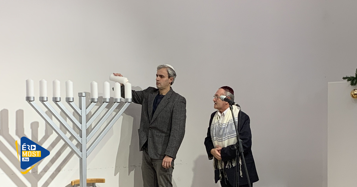 A menóra (hanukia) gyertyáját Csőzik László polgármester gyújtotta meg, ezután együtt énekeltek a jelenlévők, majd szeretetvendégséggel és beszélgetéssel zárult az ünnepség.