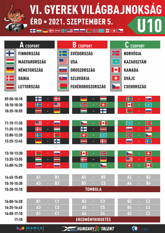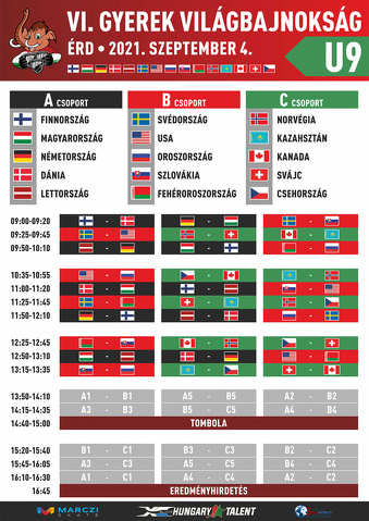 Ezt követően szeptember 4-én már három ötös csoportban tartják meg az U9-es korosztály világbajnokságát, ahol a mieink a finnekkel, a németekkel, a dánokkal és a lettekkel küzdenek meg, a B-ben a svéd, az amerikai, az orosz, a szlovák és a fehérorosz, a C-ben pedig a norvég, a kazah, a kanadai, a svájci és a cseh nemzeti együttes lép jégre.
