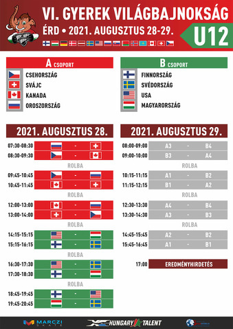 Az U12-es korosztály küzdelmeit augusztus 28-án és 29-én rendezik két négyes csoportban nyolc csapattal. Az A-csoportban Csehország, Kanada, Oroszország és Svájc, a B-ben a házigazda magyarok mellett az Egyesült Államok, Finnország és Svédország legjobbjai vesznek részt.