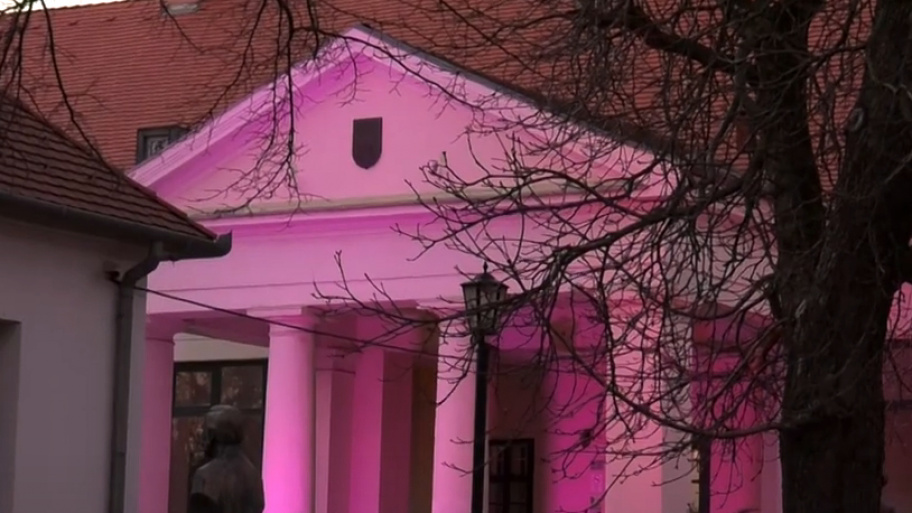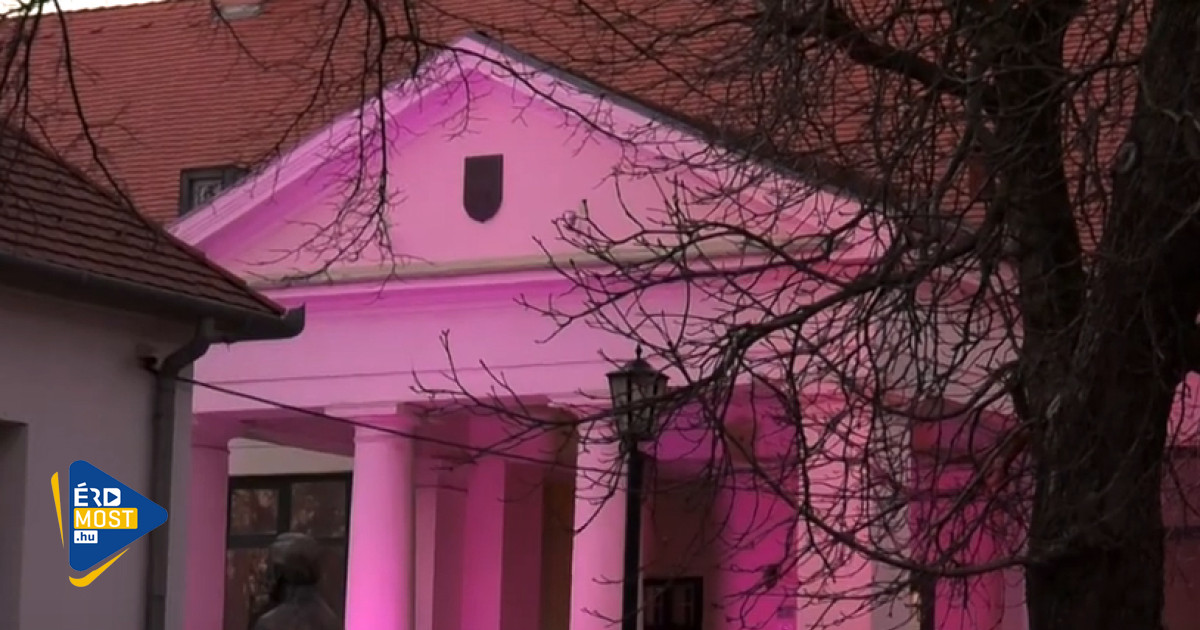 Rózsaszínbe borul a Magyar Földrajzi Múzeum kert felőli homlokzata, az Életfa szobor, illetve a harangjáték, száz nappal a Giro d'Italia Érdet is érintő futama előtt. Mutatjuk, milyen látványban lehet része annak, aki a főtéren jár. A fényeket öt perc után lekpcsolják.