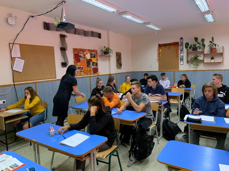 A Vörösmarty Mihály Gimnáziumban körülbelül 630 tanuló szavaz az első, rendkívüli osztályfőnöki órán. Azok, akik később érkeznek, a könyvtárban elhelyezett urnában tudják majd leadni a szavazataikat egészen délig.