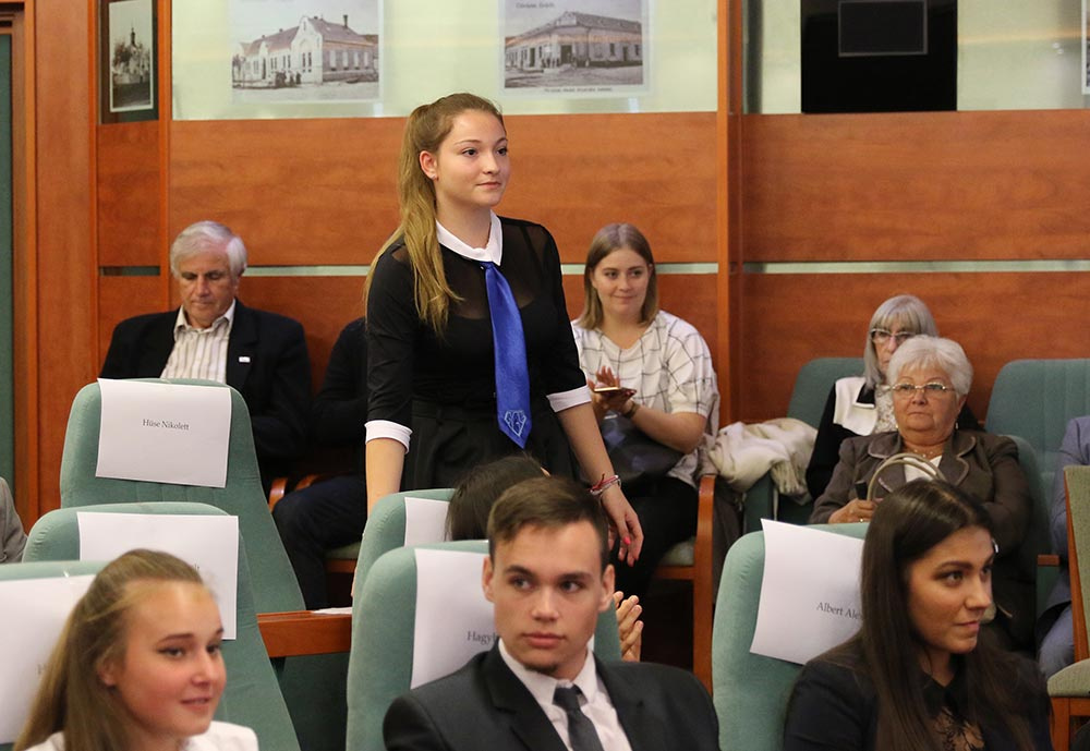 Lázár Evelin leköszönő diákpolgármester köszöntőjében kiemelte, hogy hasonló izgalommal várták egy évvel ezelőtt az eredményeket, miközben az akkor leköszönő Fodor Enikő szavait hallgatták. Azután pedig egy nagy IFÖ-s család tagjai lettek.