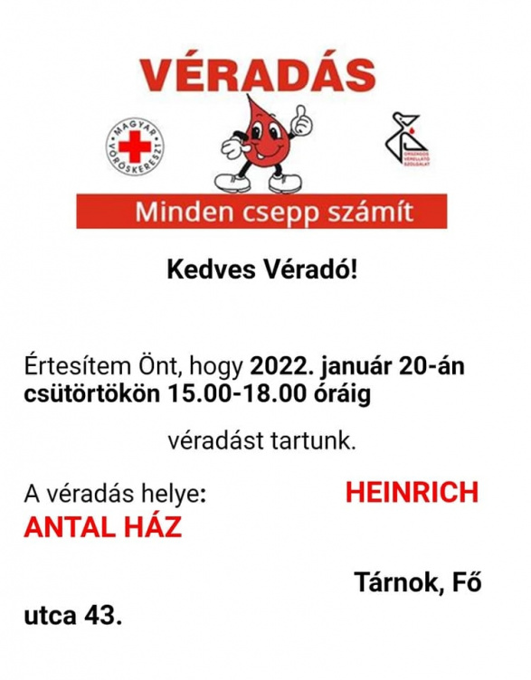 A véradás alkalmával számos ingyenes szűrővizsgálaton vehet részt: vércsoport megállapítás, vérnyomásmérés, rapid teszt (HIV, HEPA C). Aki nem adhat vért, de szeretne segíteni, kérje meg ismerőseit vagy kísérjen el egy új véradót.