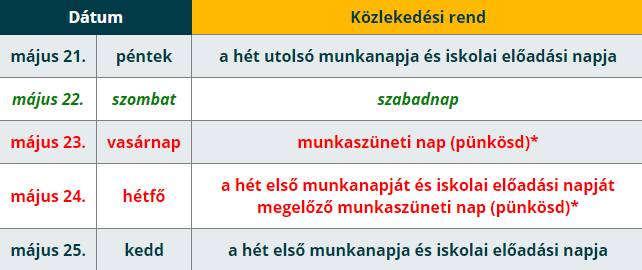 Mint a Volánbusz honlapján ismertették, május 24-én, hétfőn a munkaszüneti nap szerinti menetrend szerint közlekednek a járatok.