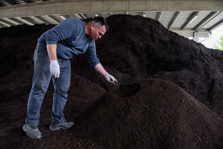 „Mérlegelés után a válogatótérbe kerül az anyag. Itt a munkatársak kézzel távolítják el a zsákokat, és különválogatják a fenyőféléket (ezekből ugyanis nem komposzt, hanem mulcs készül). A következő fázis az aprítás, darálás. A negyedik állomás a prizma, ahol forgatják, levegőztetik, homogenizálják, majd átkerül a nagy depóba, és végül a rostálóba. Itt három frakcióra bontjuk az anyagot, a morzsalék méretétől függően. A 0-18 milliméter átmérőjűből lesz a komposzt, a 18-55 milliméterest pedig egy erőműben elégetik, azaz energiát nyernek ki belőle. Az ennél nagyobbat újra ledaráljuk. Általánosságban elmondható: a bekerülő zöldhulladéknak körülbelül a feléből lesz komposzt, ami a termőközeg felújítására, tápanyag-utánpótlására szolgál. Sokan választják ezt a szerves anyagot a szervetlen műtrágyák helyett. Főleg vállalkozások vásárolják nagyobb mennyiségben, a lakossági érdeklődés még nem túl nagy, de azon dolgozunk, hogy minél többen megismerjék szolgáltatásainkat” – mondta Ficsor Norbert, akitől azt is megtudtuk: az érdi lakosok 15 százalékkal olcsóbban vásárolhatják meg a komposztot.