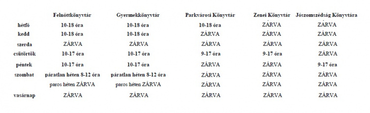 A Felnőttkönyvtár tereiben egyszerre 10, a Gyermek- és fiókkönyvtárakban egyszerre 5 látogató lehet. A könyvtár minden részlegében maximum 30 percig tartózkodhat egy-egy olvasó.